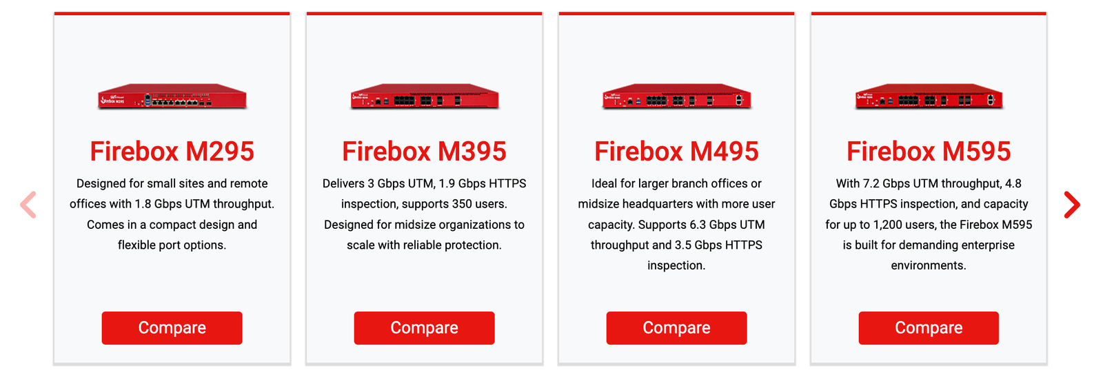 Kaasaegsete ärivajaduste jaoks loodud Firebox M-seeria rack-seadmed pakuvad järgmise põlvkonna tulemüüri (NGFW) funktsionaalsust kuni 5× kiirema ühe VPN-tunneli jõudluse ja 2–3× suurema UTM-läbilaskevõimega. Lihtsustatud litsentsimine eri teenuste lõikes annab ettevõtetele tervikliku turvakihi ilma peidetud kulude ja liigse keerukuseta. Need võimekad seadmed sobivad suurepäraselt harukontorite, hajusvõrkude ja suurte andmekeskuste kaitsmiseks.