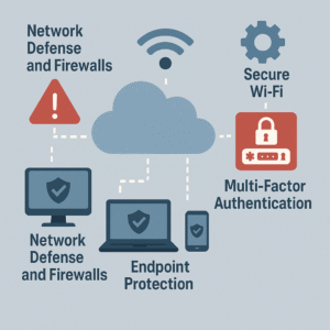 - Võrgukaitse ja tulemüürid, mis tuvastavad ja peatavad rünnakud enne, kui need ettevõtteni jõuavad.